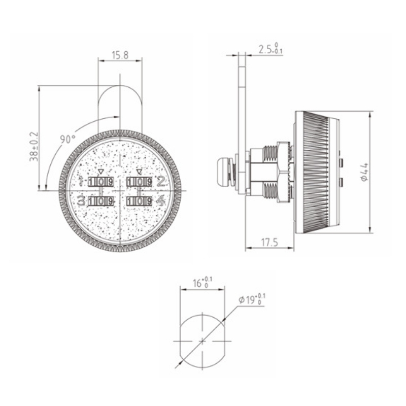 Khóa tủ mã số DMZ-6020 có thân khóa bằng hợp kim chắc chắn, núm xoay bám tay tốt, thao tác đóng mở nhẹ nhàng. Với cấu trúc xoay 90°, khóa dễ dàng tích hợp cho nhiều loại cánh tủ và hệ tủ công cộng.