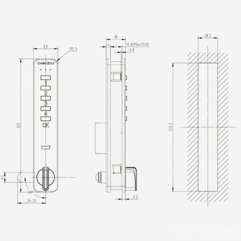 - Kích thước khóa: 125 × 23 × 18 mm, phù hợp hầu hết tủ locker.