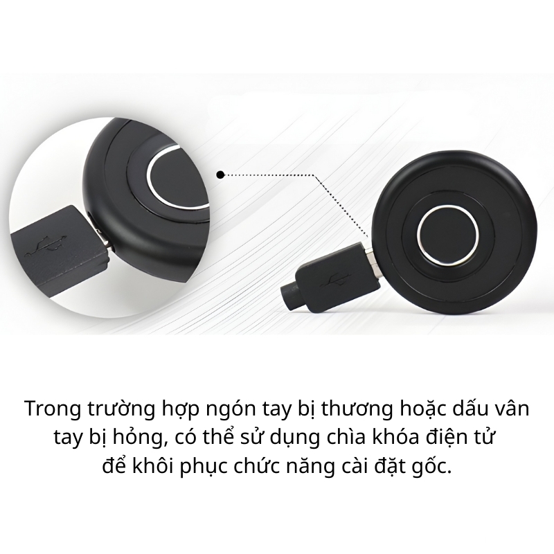 - E-KEY mở khóa dự phòng – không lo kẹt tủ: Mở khóa bằng E-KEY khi vân tay bị mòn, trầy xước hoặc không nhận. Hỗ trợ khôi phục cài đặt xuất xưởng.