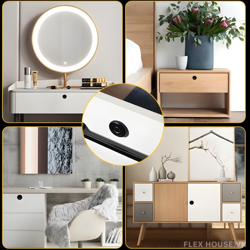 - Thiết kế lắp âm – thẩm mỹ cao: Mặt khóa tròn tối giản, gọn gàng, hài hòa với nhiều phong cách nội thất.