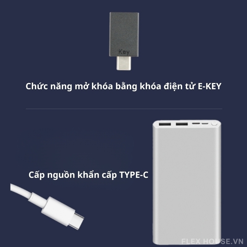 - E-Key mở khóa khẩn cấp: Sử dụng khi vân tay bị lỗi, tay ướt hoặc quên thao tác.