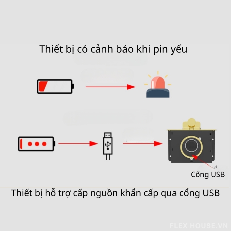 - Hỗ trợ nguồn điện khẩn cấp: Có thể cấp nguồn qua cổng USB trong trường hợp pin cạn.