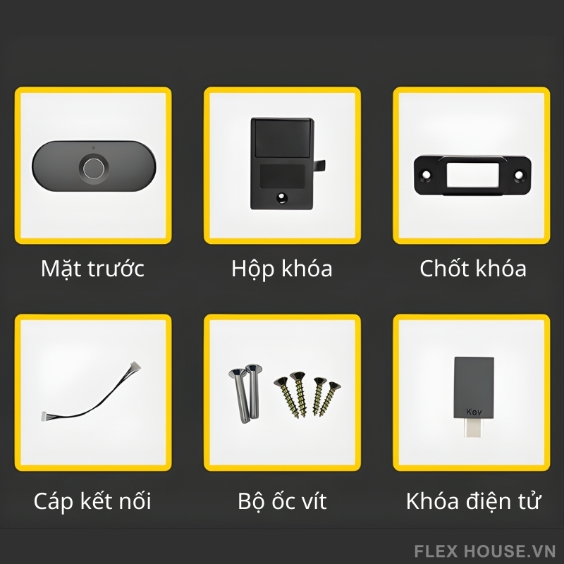 - Tặng kèm E-Key (chìa khóa điện tử): Dùng trong trường hợp vân tay bị trầy xước hoặc quên thao tác.
