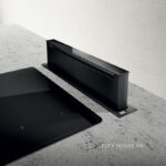 Thân máy được chế tác từ thép không gỉ kết hợp kính đen cao cấp, tạo nên vẻ ngoài thanh lịch, hiện đại và mạnh mẽ. Khi không hoạt động, Pandora hòa quyện trọn vẹn vào mặt bàn, trả lại sự gọn gàng tinh tế cho không gian bếp. Khi kích hoạt, máy trồi lên uyển chuyển, khởi động êm ái nhưng đầy uy lực, mang đến bầu không khí trong lành và thoáng đãng, khẳng định đẳng cấp của một căn bếp chuẩn thượng lưu.