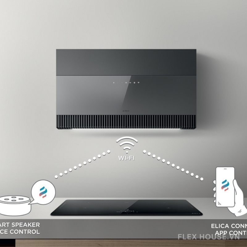 - Công nghệ kết nối thông minh: Hỗ trợ Wi-Fi, điều khiển giọng nói và ứng dụng Elica Connect, giúp bạn bật/tắt, điều chỉnh công suất, ánh sáng, theo dõi tình trạng bộ lọc hoặc liên hệ dịch vụ ngay trên điện thoại.