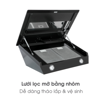 Lưới lọc bằng nhôm cao cấp không chỉ hiệu quả trong việc loại bỏ dầu mỡ mà còn dễ dàng tháo rời để vệ sinh. Phụ kiện than hoạt tính đi kèm giúp khử mùi hiệu quả, mang đến không gian bếp luôn tươi mát. Bề mặt thép không gỉ kết hợp mặt kính đen tạo nên vẻ đẹp hiện đại và sang trọng, dễ dàng làm sạch. Máy hút mùi trang bị hệ thống hút xả linh hoạt, cho phép bạn lựa chọn chế độ tuần hoàn hoặc thông gió, phù hợp với mọi không gian bếp.