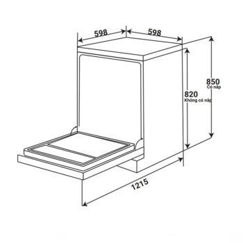 - Kích thước 850C (có nắp trên) x 598R x 598S mm/820C(Tháo nắp trên)/ x 598R x 598S