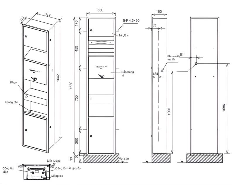 Đặt mua Máy sấy tay âm tường kết hợp tủ đựng giấy và thùng rác TOTO TYC602P