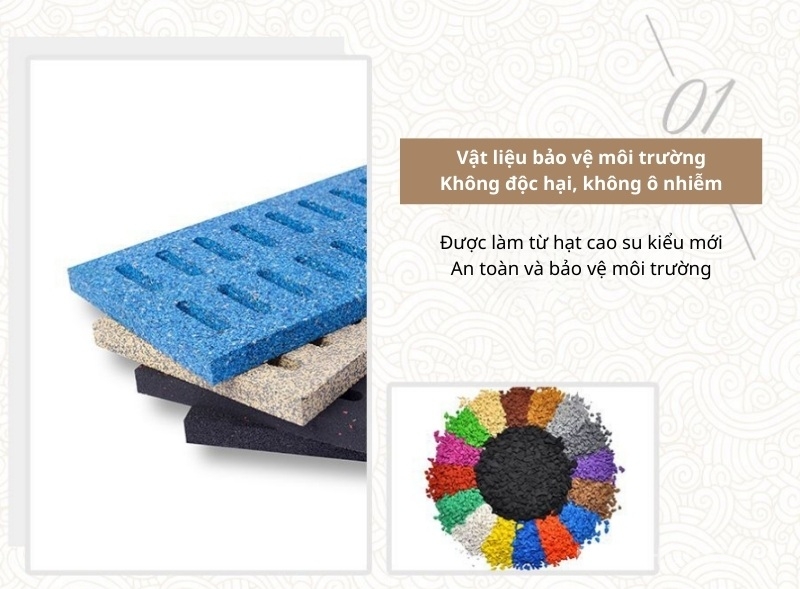 - Làm từ hạt cao su kiểu mới, tái tạo và an toàn