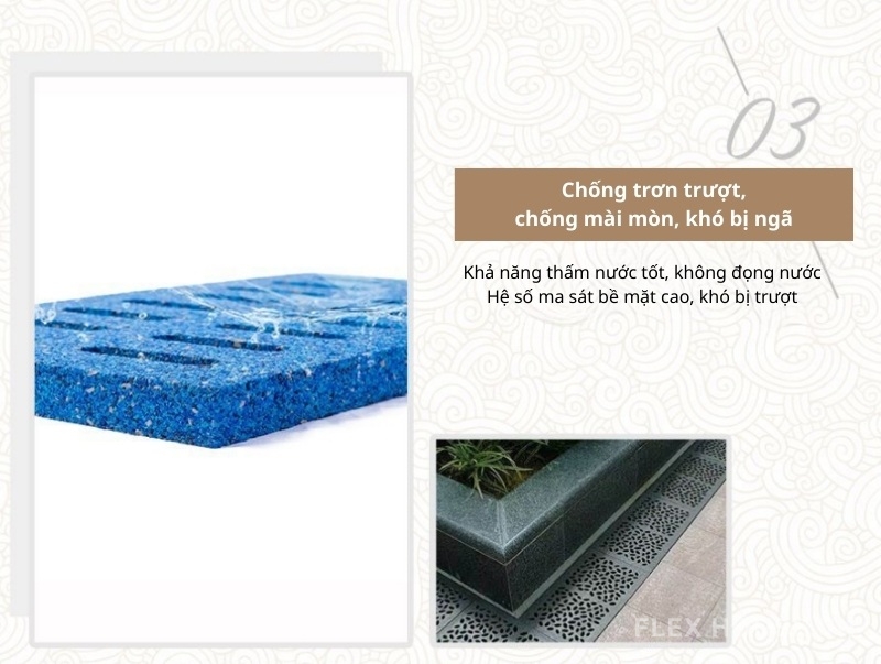 - Chống trượt – thoát nước nhanh