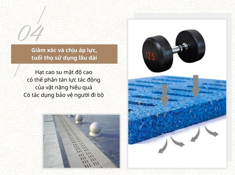 - Kết cấu hạt cao su mật độ cao phân tán lực tác động hiệu quả