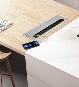 Nắp luồn dây điện hợp kim nhôm âm bàn R033 là thiết bị văn phòng thông minh giúp tối ưu diện tích, mang đến sự gọn gàng, tạo cảm hứng làm việc. Sản phẩm được hoàn thiện cao cấp, trau chuốt trong từng đường nét giúp mang lại một không gian làm việc thoải mái nhất cho người sử dụng