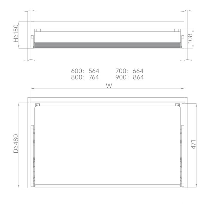 | 24776R/PP | 764×471×108 | 800mm | ≥ 480mm | 764mm | ≥ 150mm |