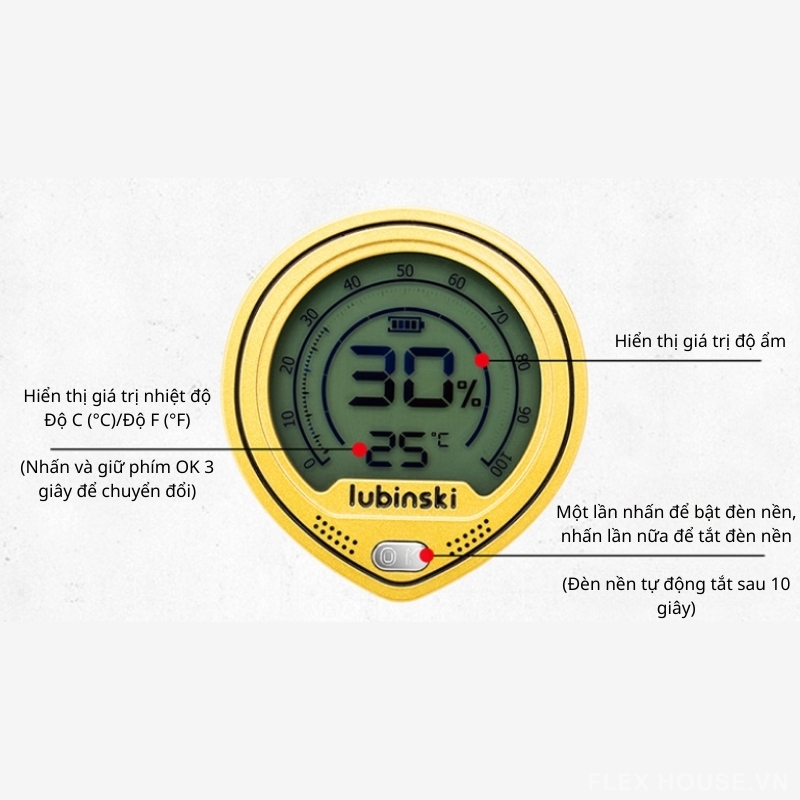 - Đèn nền tiện lợi, tự động tắt sau 10 giây tiết kiệm pin
