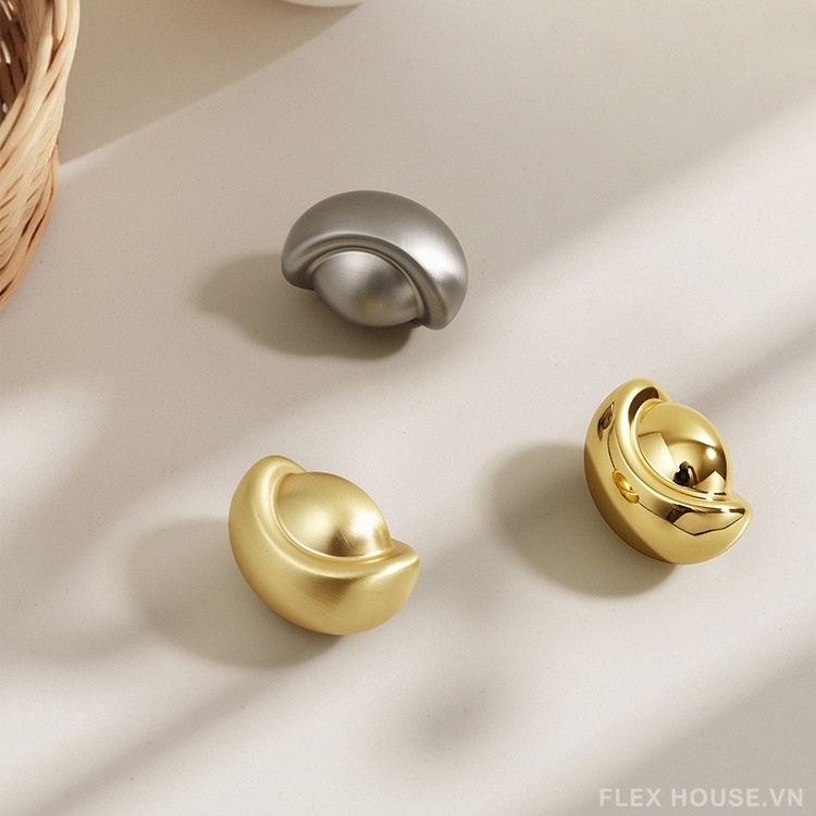 Núm tay nắm cánh tủ RX2190 được thiết kế lấy cảm hứng từ hình ảnh thỏi vàng phong thủy, mang ý nghĩa tài lộc và thịnh vượng, đồng thời tạo điểm nhấn sang trọng cho không gian nội thất. Sản phẩm được chế tác từ hợp kim kẽm cao cấp, bề mặt xử lý tinh xảo, bền màu, chống oxy hóa và trầy xước trong quá trình sử dụng. Kiểu dáng bo tròn mềm mại giúp cầm nắm chắc tay, an toàn và tiện lợi khi đóng mở. Với phong cách hiện đại – tối giản, Núm tay nắm tủ RX2190 dễ dàng ứng dụng cho nhiều hạng mục như tủ bếp, tủ quần áo, tủ lavabo hay ngăn kéo trang trí, phù hợp cả không gian gia đình lẫn nội thất cao cấp.