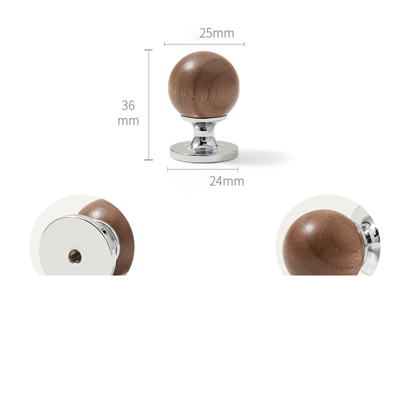 Núm tay nắm tủ bằng gỗ óc chó đế đồng cao cấp PALO777 mang vẻ đẹp mộc mạc nhưng đầy tinh tế, kết hợp hài hòa giữa chất liệu tự nhiên và kim loại sang trọng. Phần núm tròn được gia công từ gỗ óc chó tự nhiên, vân gỗ ấm áp, mịn tay, tạo cảm giác gần gũi và thân thiện khi sử dụng. Đế núm bằng đồng cao cấp giúp tổng thể trở nên chắc chắn, đồng thời tạo điểm nhấn thanh lịch, nâng tầm giá trị thẩm mỹ cho sản phẩm.