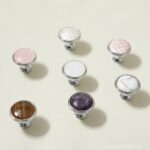 Núm tay nắm tủ đồng decor phối đá thạch anh PALO674 mang đến vẻ đẹp tinh tế và sang trọng nhờ sự kết hợp hài hòa giữa đá thạch anh tự nhiên và viền kim loại sáng bóng. Thiết kế núm tròn cổ điển, bề mặt đá được mài nhẵn tỉ mỉ, nổi bật với nhiều gam màu và vân đá độc đáo như hồng phấn, trắng ngọc, marble vân mây, tím thạch anh, nâu vân gỗ hay khảm xà cừ nhẹ nhàng, tạo hiệu ứng thẩm mỹ cuốn hút ngay từ cái nhìn đầu tiên.