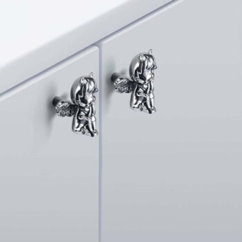Hình thiên sứ trên núm tay nắm tạo nên một điểm nhấn nghệ thuật độc đáo, làm tôn lên vẻ đẹp của các tủ gỗ và mang lại sự tinh tế cho không gian sống.