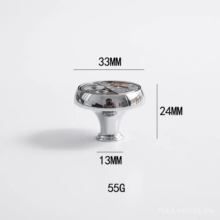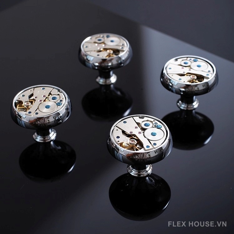 Núm tay nắm tủ đồng thau mặt máy đồng hồ Retro JYJ608 là mẫu phụ kiện nội thất độc đáo dành cho những ai yêu thích sự tinh xảo và chất nghệ thuật cơ khí. Lấy cảm hứng từ bộ chuyển động của đồng hồ cổ, phần mặt núm được thiết kế như một cơ cấu máy thu nhỏ, lộ rõ các chi tiết bánh răng, ốc xanh, trục quay… tạo nên vẻ đẹp cổ điển xen lẫn hiện đại.