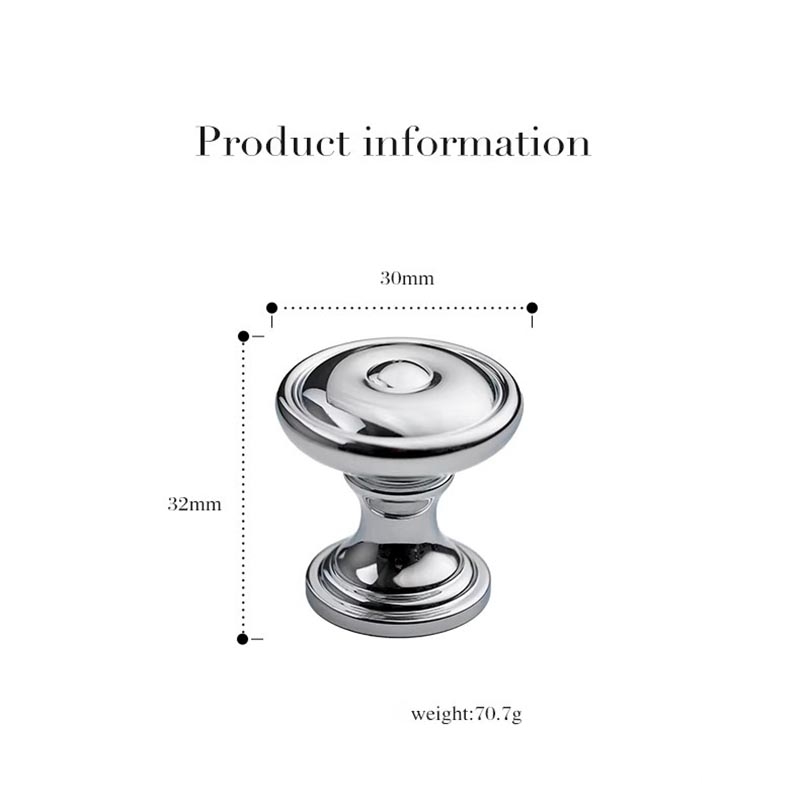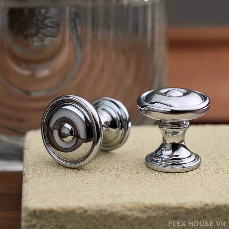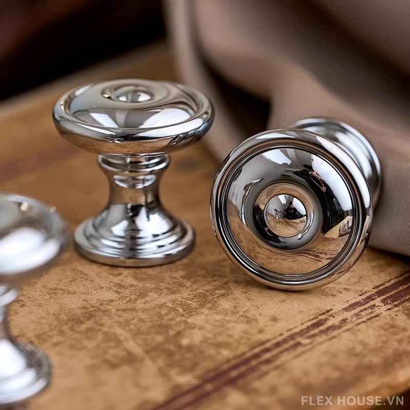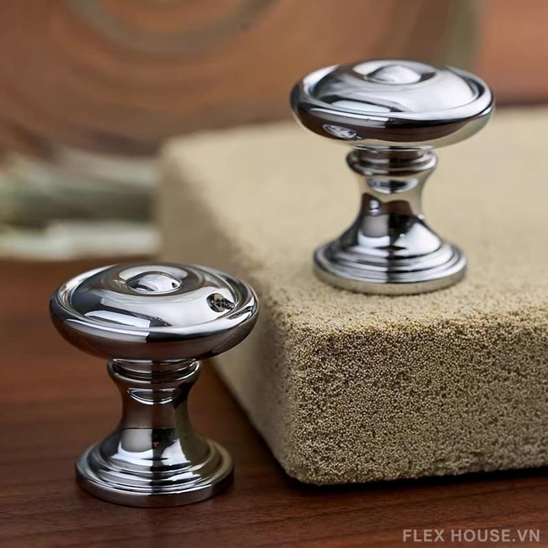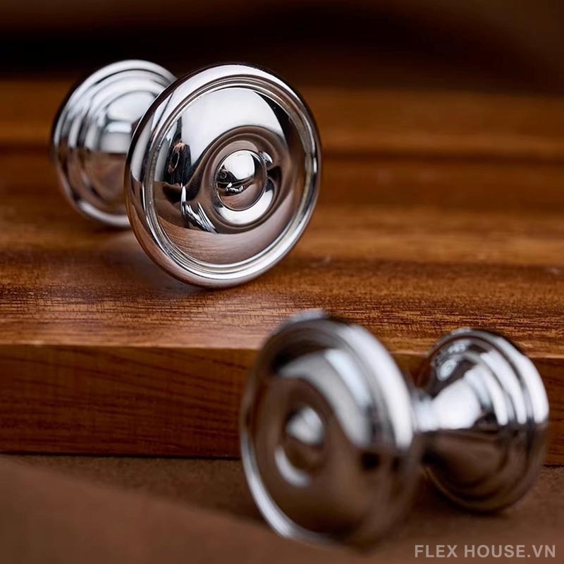 Núm tay nắm tủ đồng sang trọng màu bạc LT8419 nổi bật với thiết kế tròn tinh tế, bề mặt sáng bóng cùng các đường vân viền sắc nét mang đến vẻ đẹp hiện đại pha chút cổ điển. Gam màu bạc ánh kim sang trọng giúp sản phẩm dễ dàng kết hợp với nhiều phong cách nội thất, từ tối giản, hiện đại đến cao cấp, đặc biệt phù hợp cho tủ bếp, tủ quần áo và các ngăn kéo trang trí.