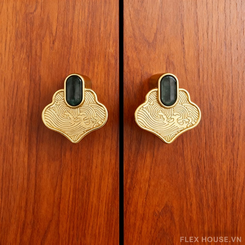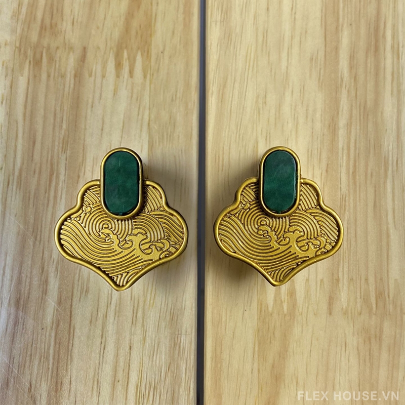 Núm tay nắm tủ hợp kim phong cách Á Đông JC8087 gây ấn tượng với thiết kế mang đậm tinh thần nghệ thuật truyền thống, nổi bật bởi các đường chạm khắc uốn lượn mềm mại và bố cục hài hòa. Điểm nhấn giả ngọc tông xanh trầm ở trung tâm tạo chiều sâu thị giác, gợi cảm giác trang nhã, sang trọng và đậm chất Á Đông, phù hợp với những không gian đề cao yếu tố thẩm mỹ và bản sắc văn hóa.