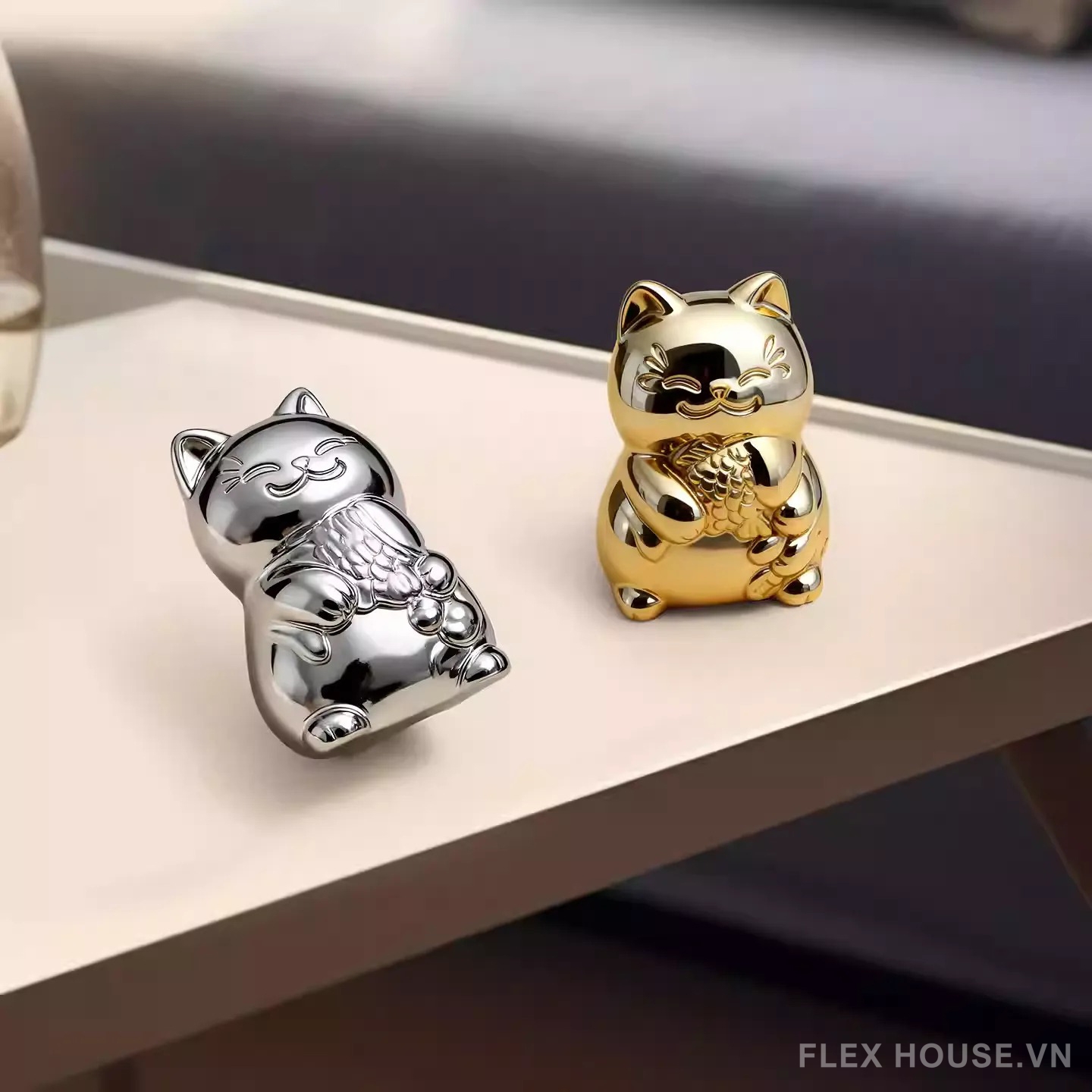 Núm tay nắm tủ đồng thau mèo thần tài JYJ5756 là điểm nhấn độc đáo dành cho những ai yêu thích phong thủy, sự may mắn và phong cách decor tinh tế. Sản phẩm được chế tác từ đồng thau cao cấp, bề mặt mạ sáng bóng với hai phiên bản vàng và bạc, mang lại vẻ sang trọng và bắt mắt cho mọi không gian nội thất.