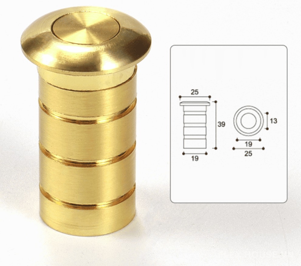 Nút chắn bụi tự động bằng đồng DFL-CB với độ bền cao, thiết kế hiện đại và được lắp đặt âm dưới sàn nhà hoặc hộc trên của cửa giúp chống bụi bẩn.