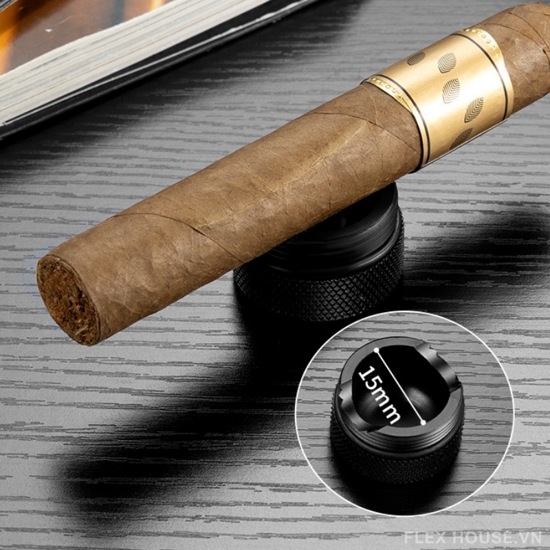 - Phần nắp có thể sử dụng như gác cigar với rãnh gác khoảng 15mm giúp đặt cigar ổn định khi thưởng thức