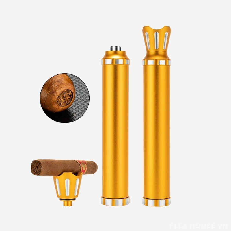 - Thân ống kim loại cứng cáp giúp bảo vệ xì gà khỏi va đập, giữ nguyên hình dạng khi di chuyển