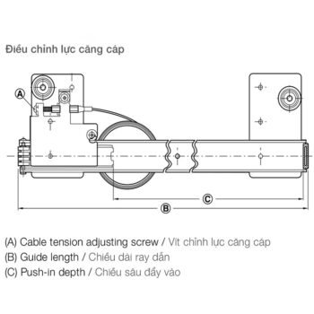 - Trọn bộ gồm: 1 cặp ray trượt, 2 cáp với vít điều chỉnh