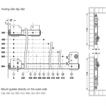 - Phiên bản: chiều dài ray 408mm, chiều sâu đẩy vào max 294mm