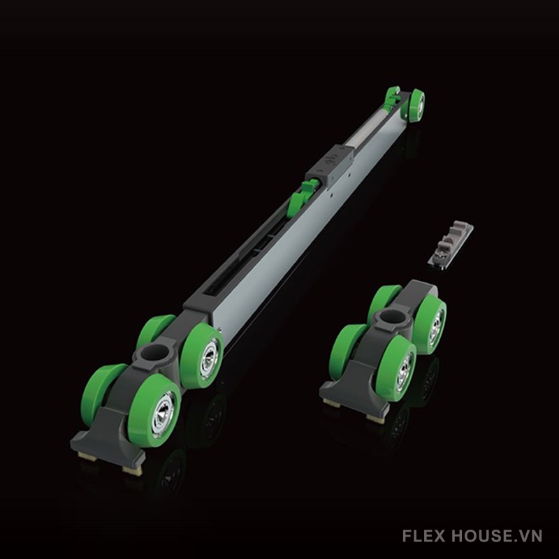 - Thiết kế giảm chấn đối xứng trên con lăn treo, phù hợp cho cửa có bề rộng nhỏ hơn.