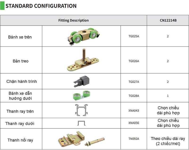 • Ray trượt cửa lùa