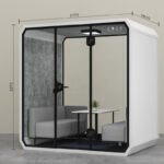 Pod thảo luận họp online cách âm công sở PDOF.L2172 có kết cấu đơn giản, dễ lắp đặt với kích thước chứa được tầm 4 người. Bên trong có đầy đủ đèn, quạt và ổ cắm điện, nội thất tiện lợi với 1 bàn và 2 ghế sofa, thuận tiện khi sử dụng. Màu sắc sản phẩm có thể tùy chỉnh, vui lòng liên hệ với dịch vụ chăm sóc khách hàng để biết thêm chi tiết.
