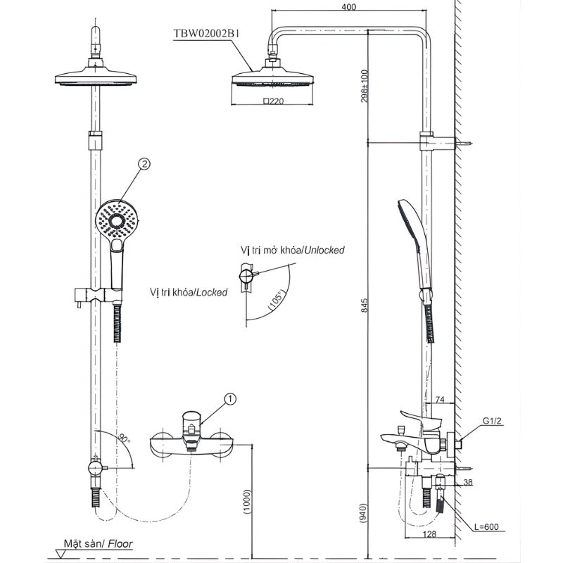 Sen cây nóng lạnh TBW02002BA của TOTO sở hữu thiết kế dáng vuông tối giản, đường nét sắc sảo, mang đậm phong cách hiện đại và sang trọng. Sản phẩm được chế tạo từ đồng mạ Niken–Crom (Ni-Cr) cao cấp, cho độ bền cao, khả năng chống ăn mòn tốt và bề mặt luôn sáng bóng theo thời gian. Đầu sen kích thước 220 mm giúp dòng nước phân bổ đều, tạo cảm giác thoải mái và dễ chịu khi tắm.