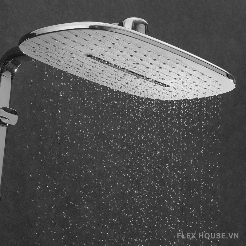 Bề mặt thân sen còn được thiết kế như một chiếc khay nhỏ thoát nước tự nhiên, tiện lợi đặt sữa tắm, dầu gội – cực kỳ tinh tế và thự