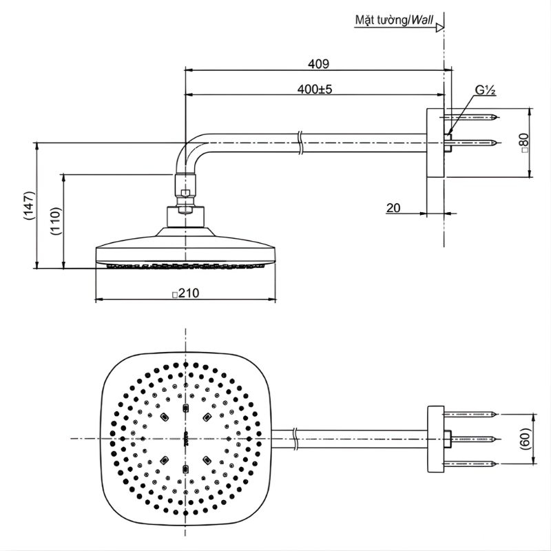 - Kích thước bát sen: Ø210mm