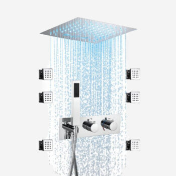 Điểm nổi bật nhất của Sen tắm KAFF KF-HI16032A chính là bát sen âm trần kích thước 300×300mm với tích hợp đèn LED và loa nghe nhạc, biến không gian phòng tắm thành một khu spa thu nhỏ, giúp bạn tận hưởng những phút giây thư giãn hoàn hảo. Đặc biệt, sản phẩm còn được trang bị công nghệ điều khiển thông minh, cho phép điều chỉnh từ xa qua smartphone, mang đến trải nghiệm hiện đại và tiện lợi.