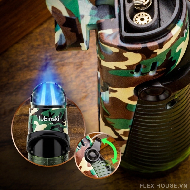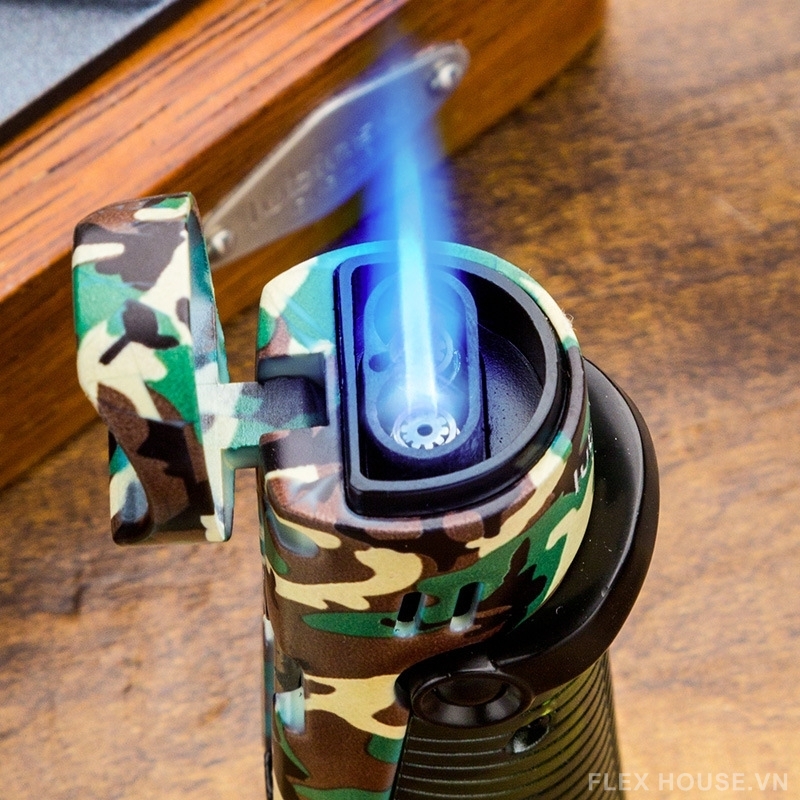 - Bật lửa khò 2 tia mạnh mẽ: ngọn lửa xanh nhiệt cao, đốt nhanh và đều
