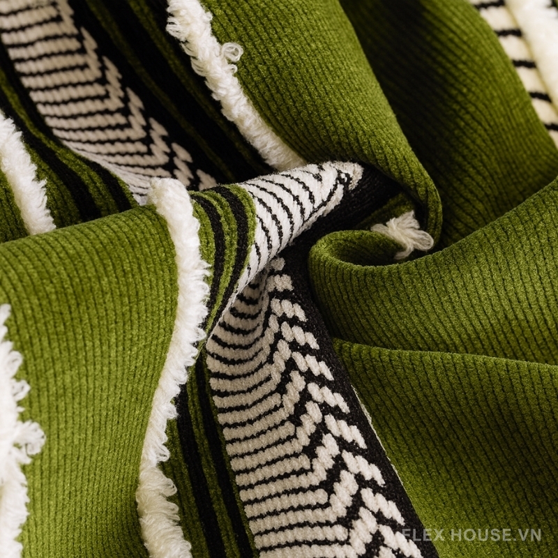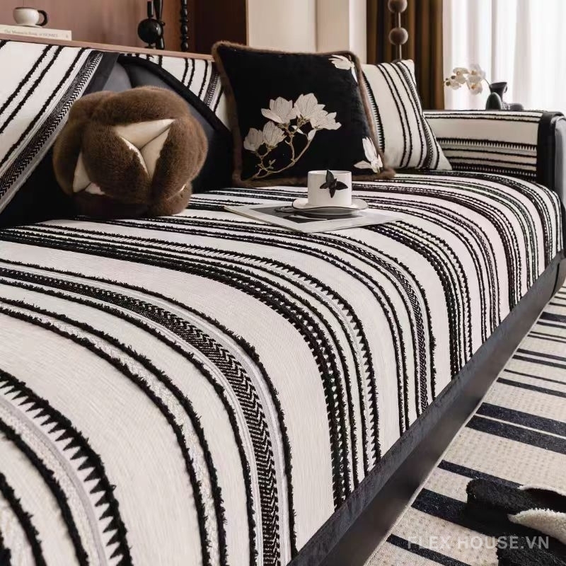 Tấm phủ ghế sofa Chenille phong cách retro PJ6445 mang phong cách retro – cổ điển pha trung đại đầy tinh tế, giúp không gian phòng khách trở nên ấm cúng, nghệ thuật và đậm chất hoài niệm. Họa tiết sọc dệt nổi kết hợp màu sắc trung tính – cổ điển như trắng, xanh lá mang lại chiều sâu thị giác và tạo điểm nhấn sang trọng cho bất kỳ kiểu sofa nào. Sản phẩm phù hợp sử dụng cho cả bốn mùa, đặc biệt lý tưởng cho mùa thu – đông với cảm giác ấm áp, mềm mịn và dễ chịu.