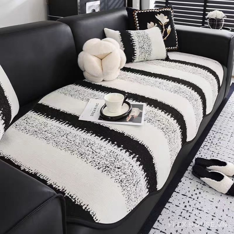 Giới thiệu về Tấm phủ ghế sofa Chenille sọc loang đen trắng PJ8996