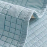 Vải cotton có kết cấu dày dặn nhưng vẫn nhẹ, thoáng, tạo cảm giác dễ chịu khi chạm vào. Gam màu trung tính hài hòa như xanh nhạt và đỏ giúp tấm phủ dễ dàng hòa hợp với mọi phong cách nội thất. Bề mặt tinh tế, sợi vải bền, không xù lông, không phai màu, phù hợp sử dụng quanh năm.