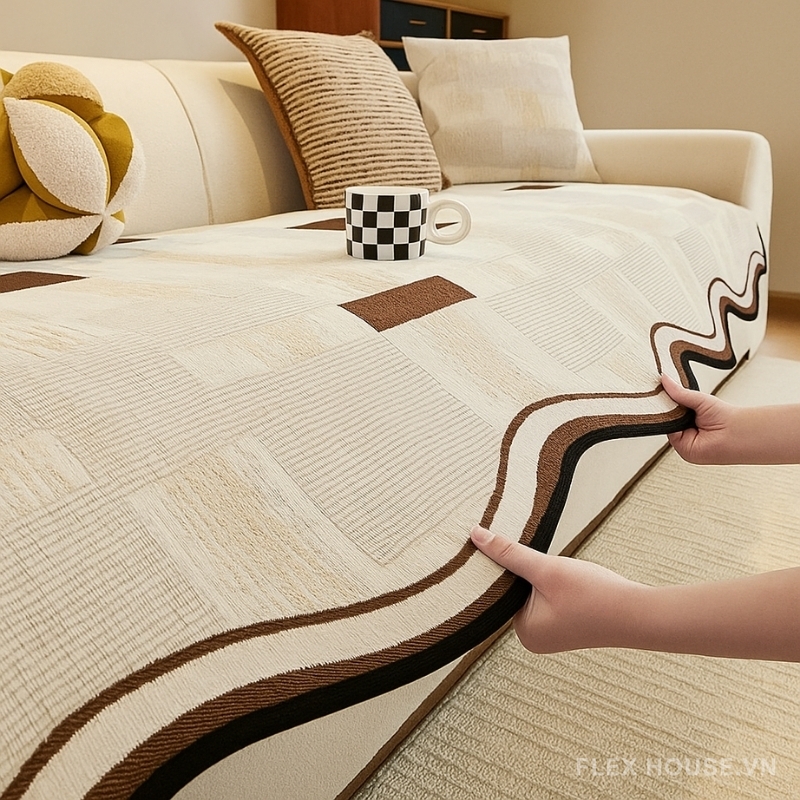 - Chống trượt cao cấp – ổn định và chắc chắn: Lớp lót được xử lý chống trượt giúp tấm phủ cố định chắc chắn trên sofa mô-đun, không bị xô lệch khi sử dụng.