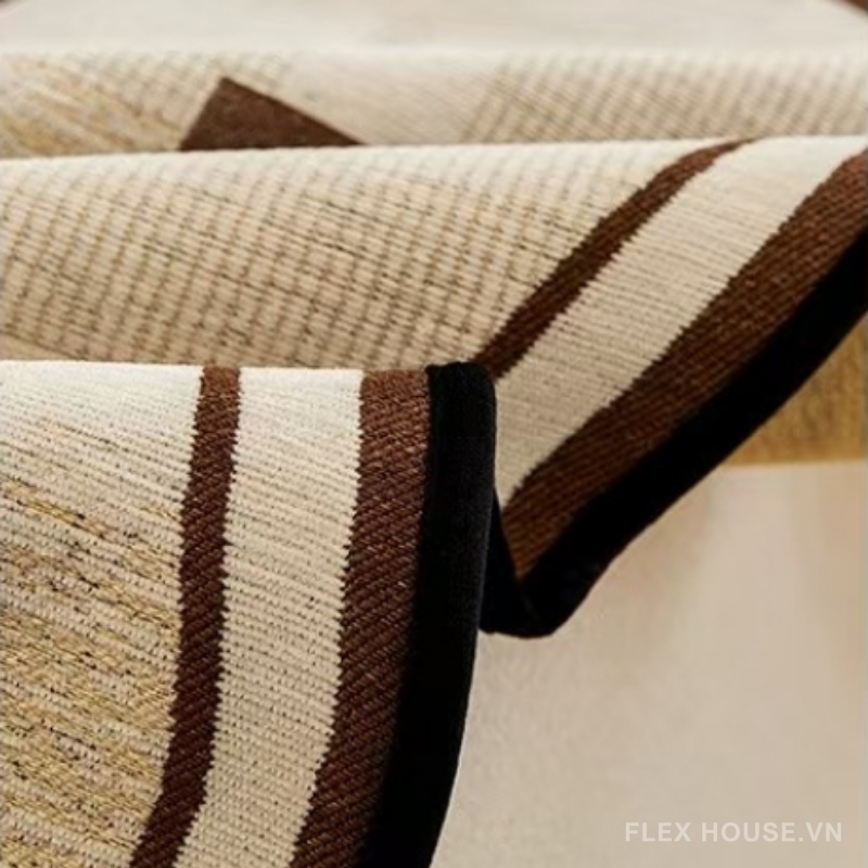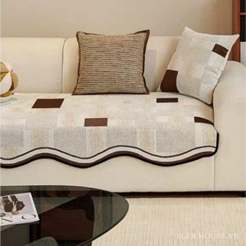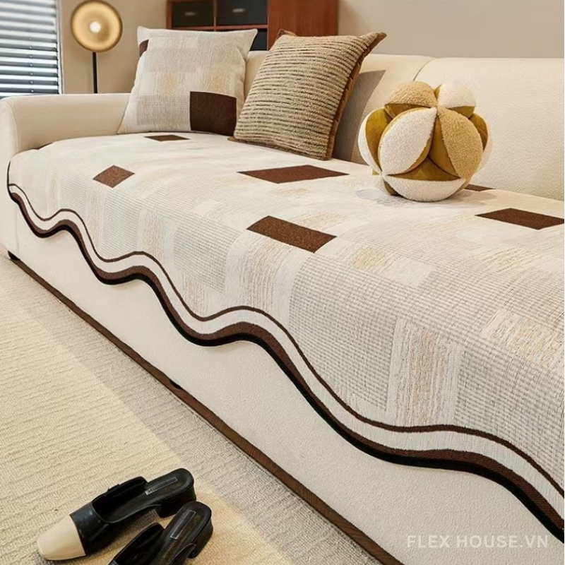 Lấy cảm hứng từ những đường thẳng cổ điển và bố cục hình học hài hòa, sản phẩm sử dụng vải chenille cao cấp, mang lại bề mặt mềm mịn, kết cấu ba chiều tinh tế và cảm giác chạm êm ái khó cưỡng. Các gam màu nâu đậm, nâu nhạt cao cấp và thanh lịch giúp tấm phủ dễ dàng hòa hợp với mọi phong cách nội thất – từ cổ điển, trung tính đến hiện đại sang trọng.