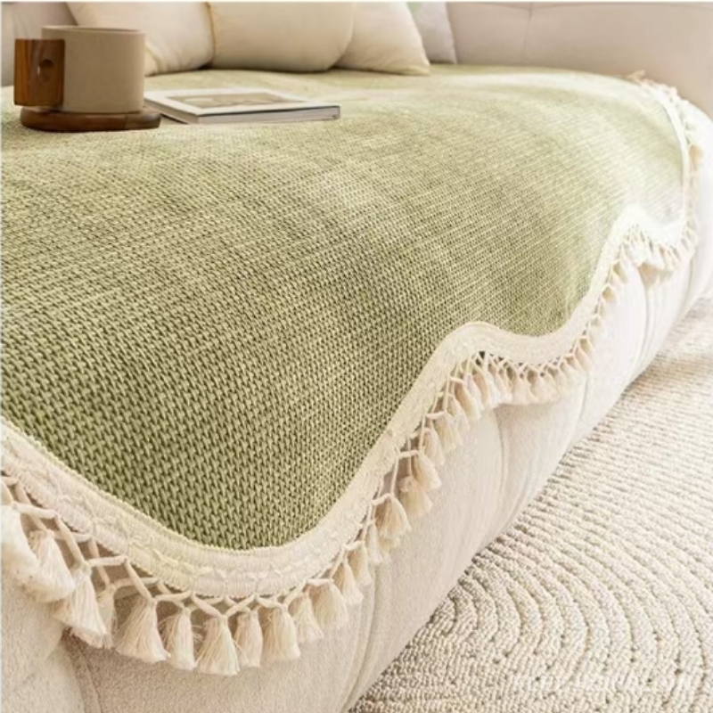 Giới thiệu về Tấm phủ ghế sofa vải Chenille viền tua rua PJ3885