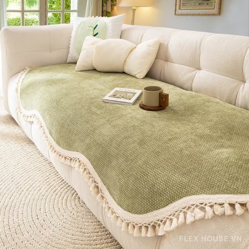Các ưu điểm của Tấm phủ ghế sofa vải Chenille viền tua rua PJ3885