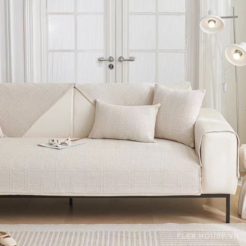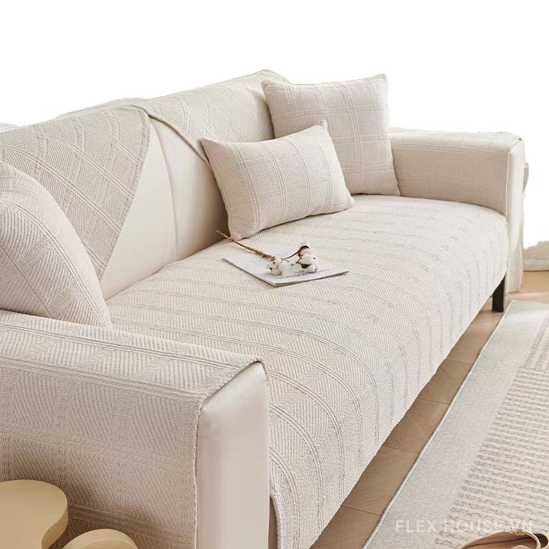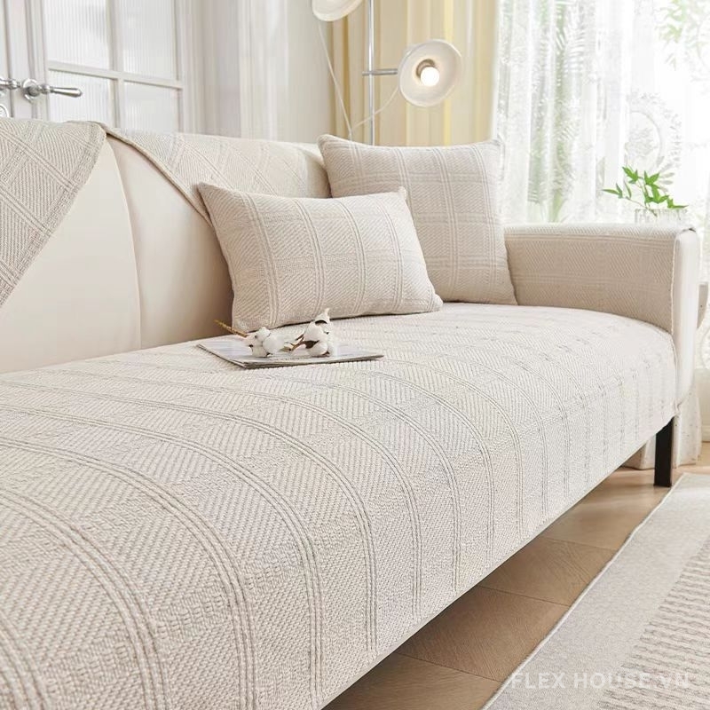 Họa tiết ô vuông kẻ caro màu be nhã nhặn là điểm nhấn đặc trưng, mang lại cảm giác nhẹ nhàng, ấm cúng nhưng không kém phần thanh lịch. Tấm phủ phù hợp cho nhiều loại sofa – đặc biệt là ghế sofa mô-đun hoặc ghế rời, giúp bảo vệ ghế khỏi bụi bẩn, trầy xước và tạo điểm nhấn trang trí tinh tế cho phòng khách.