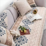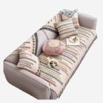 - Thiết kế thủ công tinh tế – từng đường kim mũi chỉ hoàn hảo: Các cạnh vải được may khóa viền thủ công bằng chỉ cotton, tăng độ bền và chống sờn mép. Viền chỉ đồng màu tạo nên nét hoàn thiện tinh tế, giúp tấm phủ vừa chắc chắn vừa sang trọng khi trải lên sofa.
