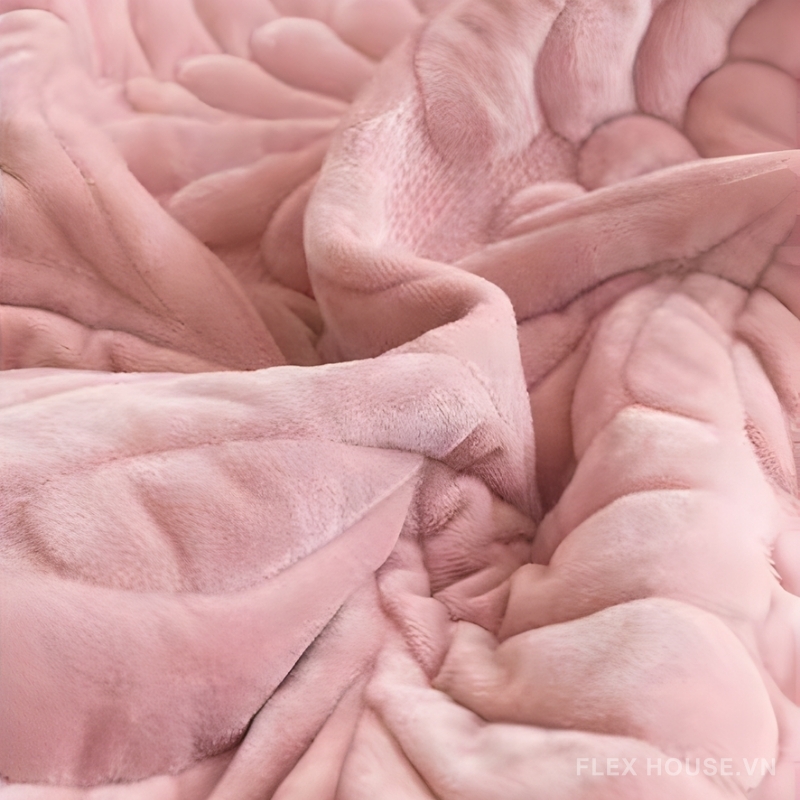- Chất liệu nhung pha lê cao cấp – mềm mại & ấm áp: Vải Milk Velvet (nhung sữa) dày dặn, mềm mại, giữ nhiệt nhanh, mang lại cảm giác ấm áp tức thì mà vẫn thoáng khí, dễ chịu cho làn da.