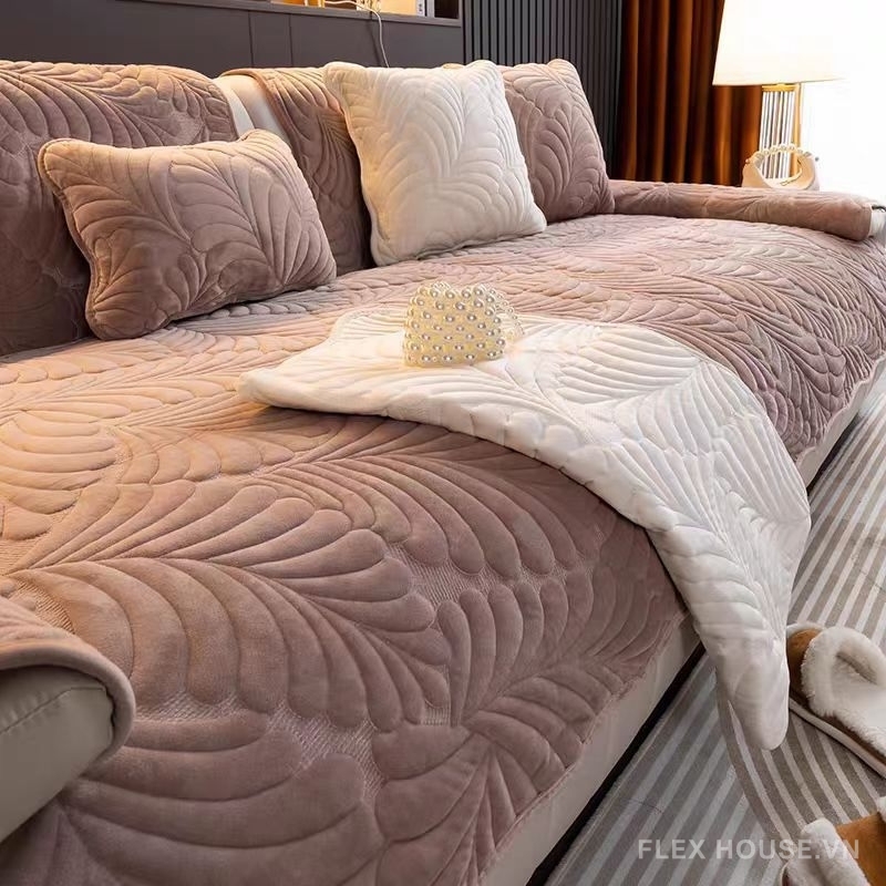 Được làm từ vải nhung pha lê cao cấp, tấm phủ mang đến độ mềm mại mịn màng như sữa, cho cảm giác ấm áp ngay khi chạm vào. Kết cấu chần bông ba chiều 3D cùng họa tiết lá nổi tinh xảo tạo chiều sâu thị giác và cảm giác sang trọng, khiến sofa của bạn trở nên nổi bật và đầy sức sống trong mùa thu – đông. Nhờ công nghệ nhuộm hoạt tính thân thiện môi trường, sản phẩm giữ màu tươi sáng, không phai, an toàn cho da và phù hợp với mọi đối tượng sử dụng — từ trẻ nhỏ đến người lớn tuổi.